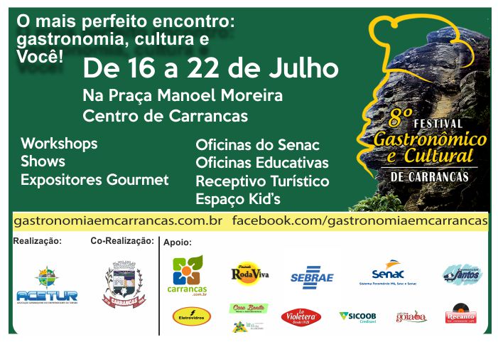 8º Festival Gastronômico e Cultural de Carrancas . De 16 a 22 de julho
