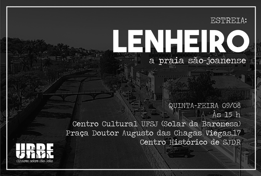 O projeto de extensão “Urbe - Olhares sobre São João” da Universidade Federal de São João del-Rei (UFSJ) lança, às 15h desta quinta-feira, 9 de agosto, no Centro Cultural UFSJ, o documentário “Lenheiro, a praia são-joanense”. O evento pretende relembrar parte da história da cidade, que teve sua origem às margens do Córrego, popularmente chamado de “praia”, devido à abundância de água e areia branca ao seu redor. A entrada é gratuita.