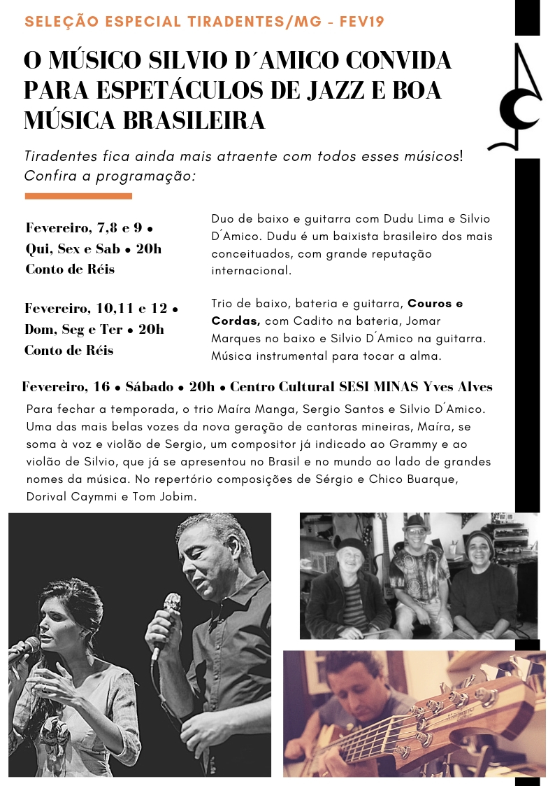 Espetáculo de Jazz e boa Música Brasileira . Sílvio D' Amico . De 07 a 12 de fevereiro . 2019