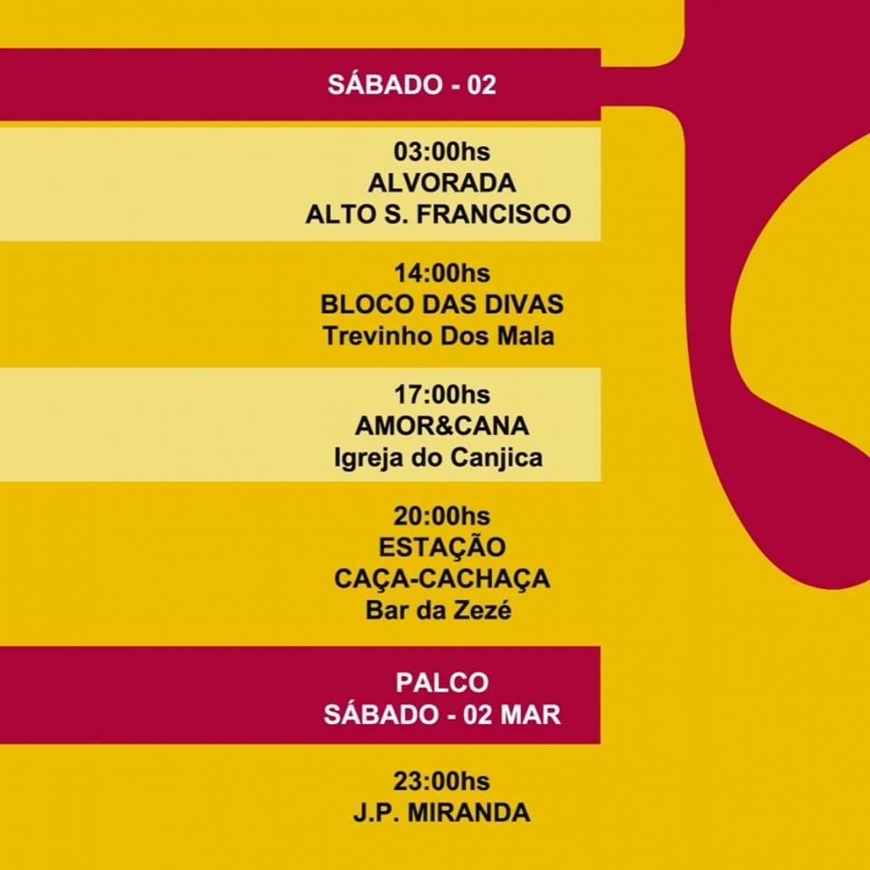 Carnaval Cultural de Tiradentes . Programação 02 de março . 2019