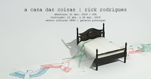 No dia 11 de abril, às 20h, o artista plástico Rick Rodrigues abre sua nova exposição "A casa das coisas”, na Galeria Principal do Centro Cultural UFSJ. A mostra ficará em exibição até o dia 26 de maio de 2019.