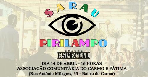 A convite do Bonde do Lazer e da Associação comunitária do Carmo e Fátima, o Sarau Pirilampo fará uma participação especial nesse próximo final de semana. Para somar forças aos artistas locais e ao movimento convidamos todos para se reunirem com a gente nessa maravilhosa tarde de domingo que estará recheada de atrações. O sarau conta com apresentações poéticas e musicais de artistas locais. Venha fazer parte dessa edição especial com a gente!! O evento Bonde do Lazer contará com torneio infantil de futebol, aulão de zumba e oficina de malabares, além de muitas atrações musicais.