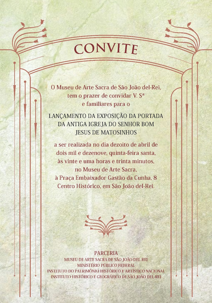 Depois de 49 anos fora de São João del-Rei, o portal da da fachada da antiga igreja de Matosinhos, atribuída a Francisco Cerqueira; pode novamente ser vista no Museu de Arte Sacra. Mais um grande atrativo cultural para a Semana Santa (André Dangelo).