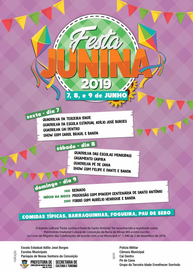 Festa Junina e Festa de Santo Antônio . Dias 07, 08 e 09 de junho . 2019