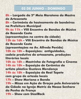 VII Mostra de Artesanato e Cultura . Programação 02 de junho . 2019