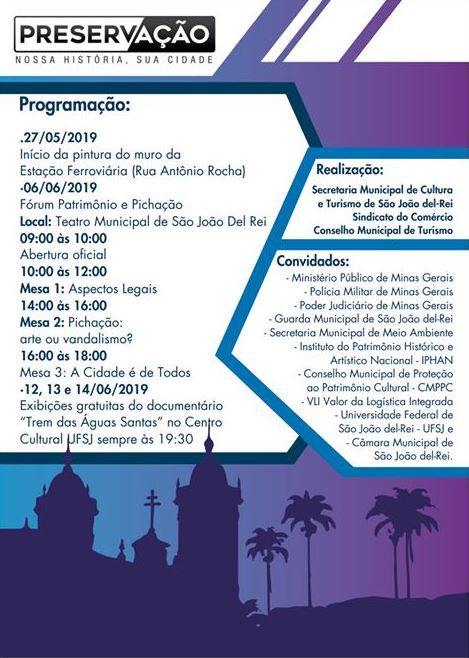 Fórum Patrimônio e Pichação . Secretaria de Cultura e Turismo de São João del-Rei . Dias 12, 13 e 14 de junho . 2019