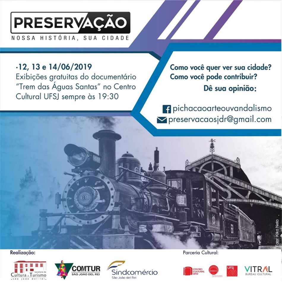 Exibição do documentário "Trem das Águas Santas" . Dias 12, 13 e 14 de junho . Centro Cultural UFSJ . 2019