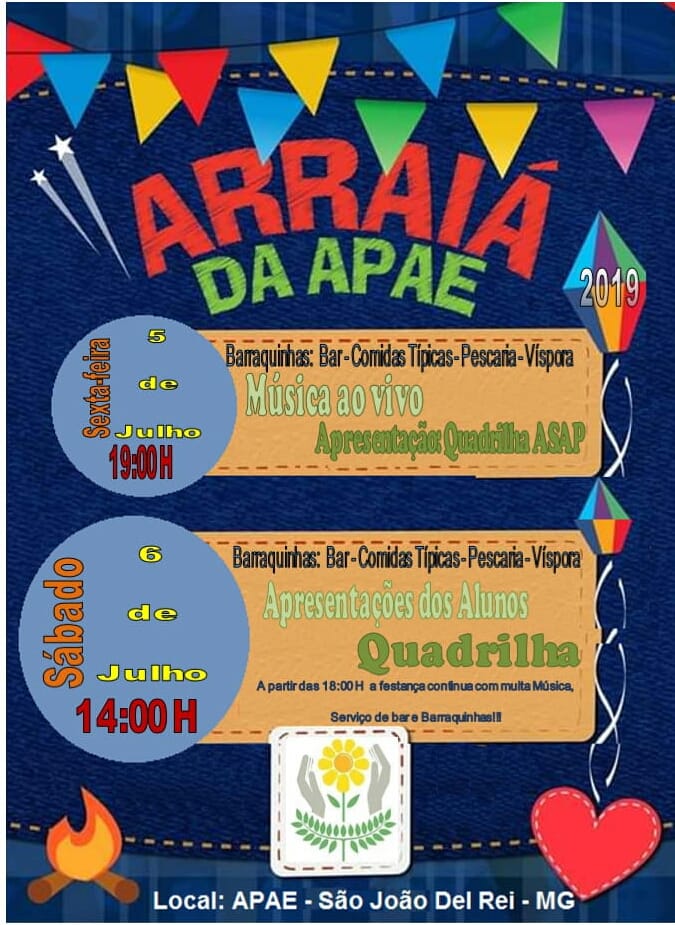 Arraiá da Apae . Apae SJDR . Dias 05 e 06 de Julho . 2019