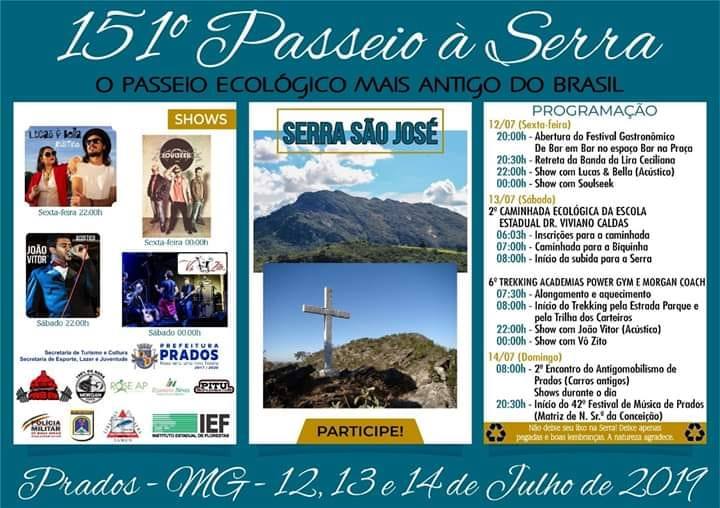 151º Passeio a Serra São José "Passeio Ecológico mais Antigo do Brasil" . Programação 12 13 e 14 de Julho . 2019