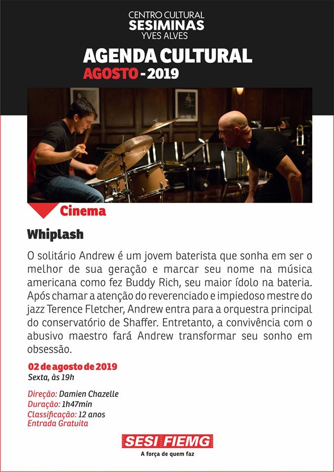 Exibição filme "Whiplash" . Centro Cultural SesiMinas Yves Alves . 2019