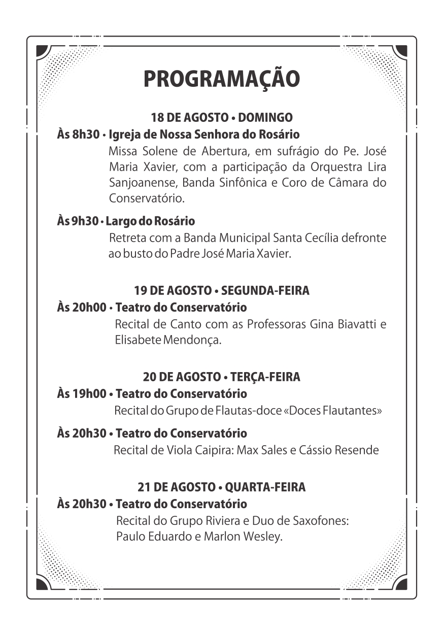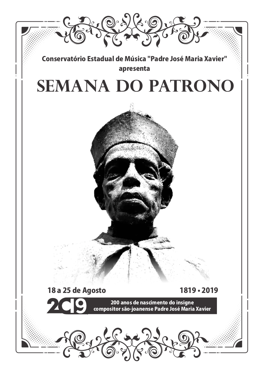 Semana do Patrono . Conservatório Estadual de Música Pe. José Maria Xavier . Programação Completa de 18 a 25 de agosto . 2019