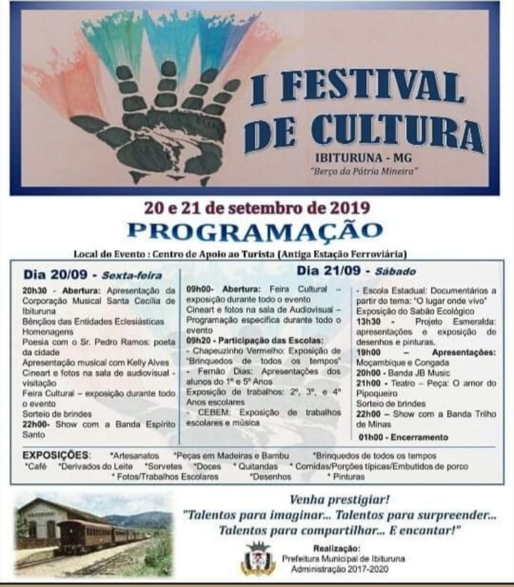 I Festival de Cultura . Dias 20 e 21 de setembro . Centro de Apoio ao Turista . 2019