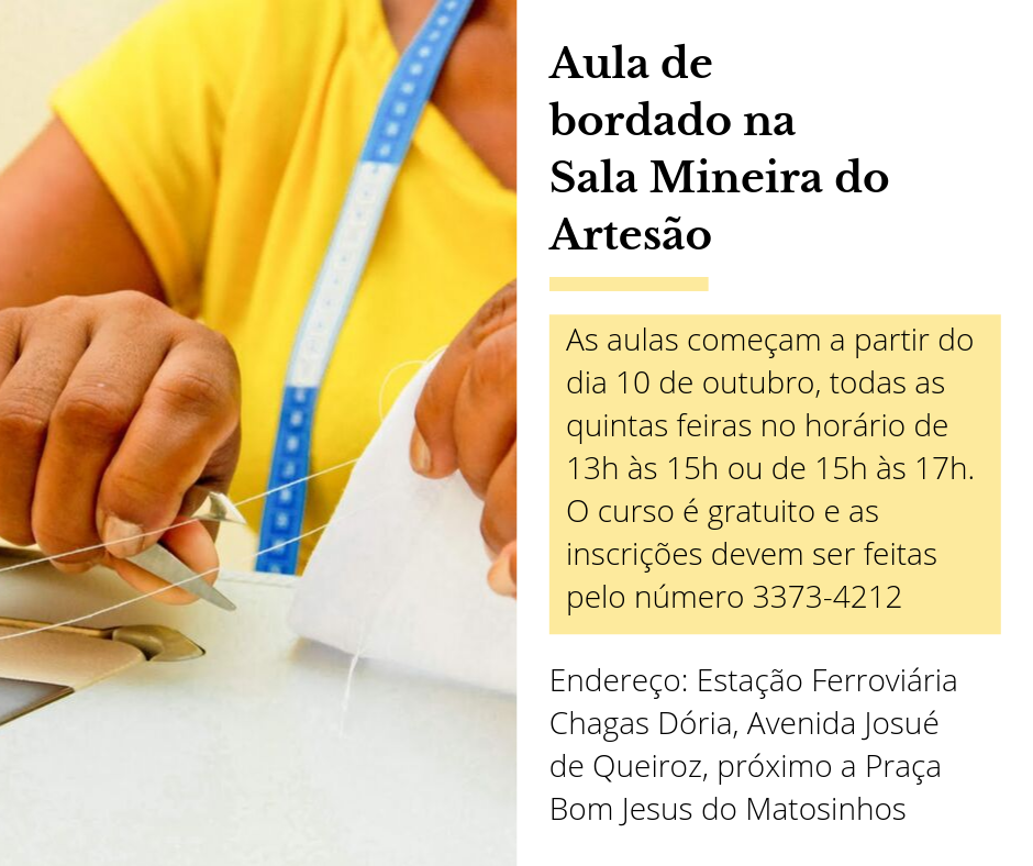 Aula de Bordado na Sala Mineira do Artesão . Estação Ferroviária Chagas Dória . 2019