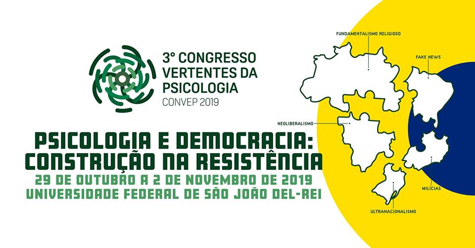 3º Congresso Vertentes da Psicologia "Psicologia e Democracia: Construção na Resistência" . Universidade Federal de SJDR . Programação de 29 de Outubro a 02 de Novembro . 2019