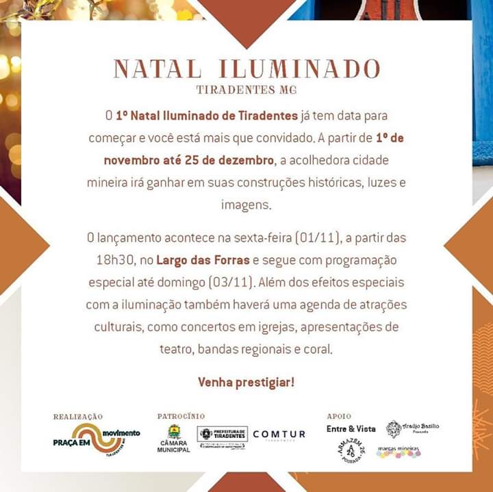 1º Natal Iluminado de Tiradentes . Largo das Forras - De 01 a 03 de novembro . 2019