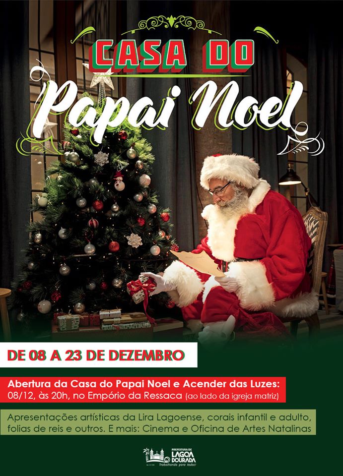 No domingo (08), Lagoa Dourada realizará a abertura da Casa do Papai Noel e o Acender das Luzes, a partir das 20h, no novo local da casinha: no Empório da Ressaca, ao lado da Igreja Matriz.