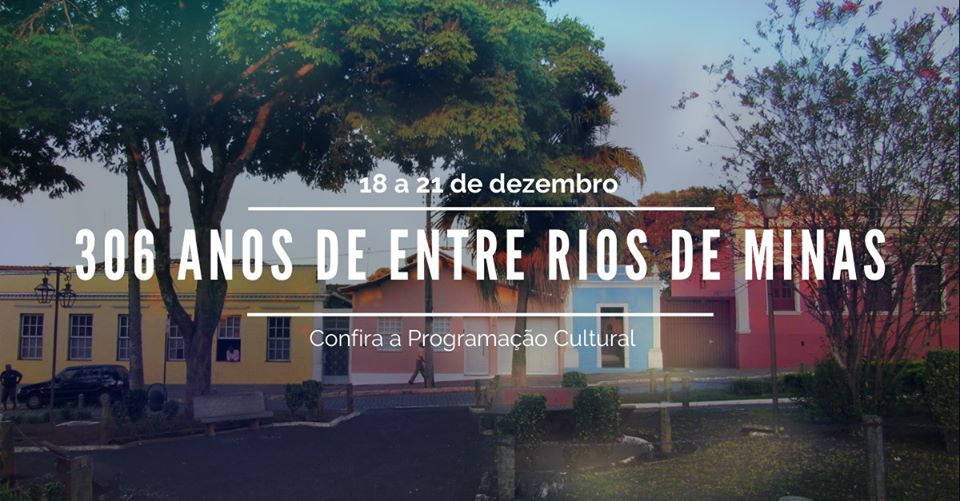 Entre Rios de Minas está completando 306 anos de fundação. E para comemorar essa data memorável para o Município, que teremos do dia 18/12 e 21/12 uma programação repleta de música, teatro, arte e cultura. Confira a programação completa!