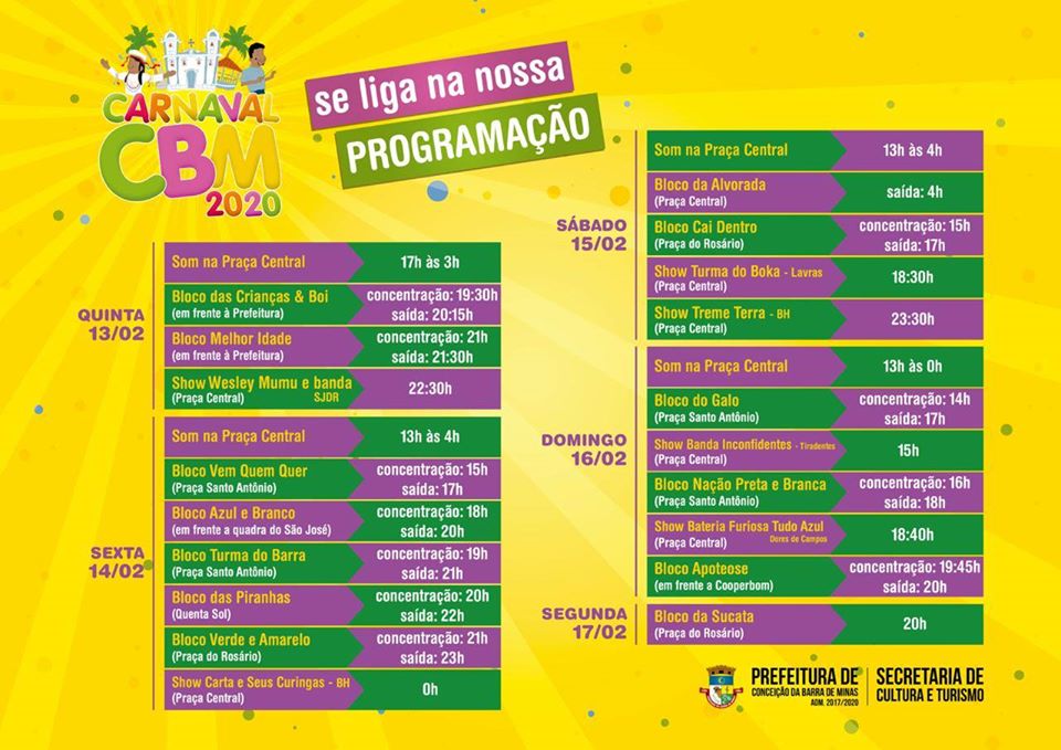 28º Carnaval CBM . Conceição da Barra de Minas . De 13 a 16 de Fevereiro . 2020