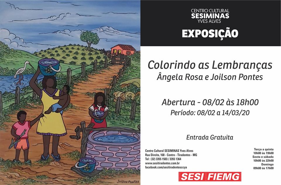Exposição "Colorindo as Lembranças" Ângela Rosa e Joilson Pontes . Centro Cultural SesiMinas Yves Alves . De 08 a 14 de Fevereiro . 2020