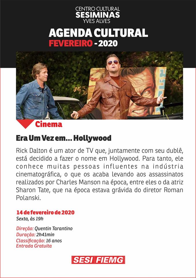 Exibição Filme "Era Uma Vez em Hollywood" . Centro Cultural SesiMinas Yves Alves . 2020
