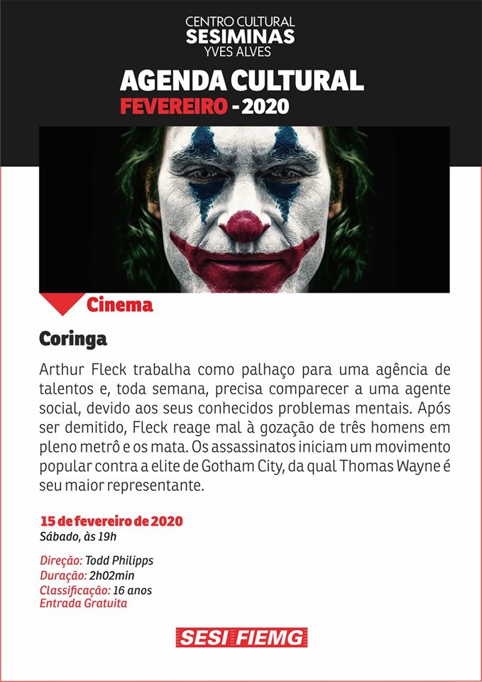 Exibição Filme "Coringa" . Centro Cultural SesiMinas Yves Alves . 2020