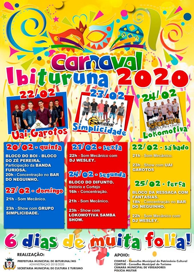 Carnaval Ibituruna . De 20 a 25 de Fevereiro . 2020
