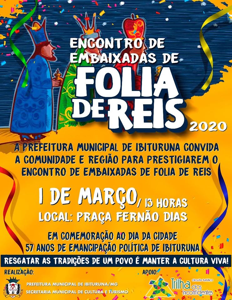Encontro de Embaixadas de Folia de Reis . 57 anos da cidade de Ibituruna . Praça Fernão Dias . 2020