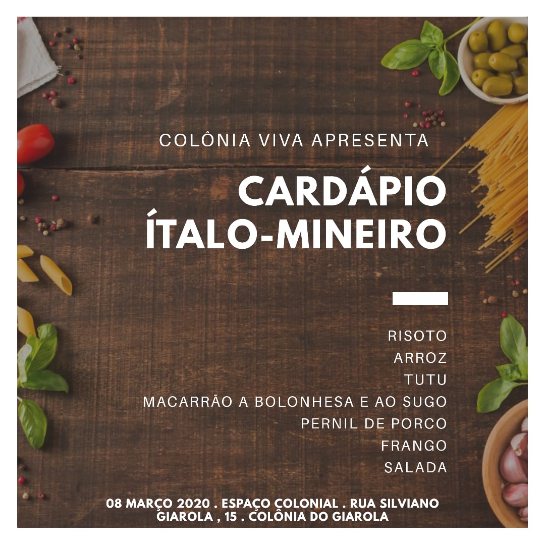 Almoço "Cardápio Ítalo-Mineiro" . Espaço Colonial, Giarola . 2020