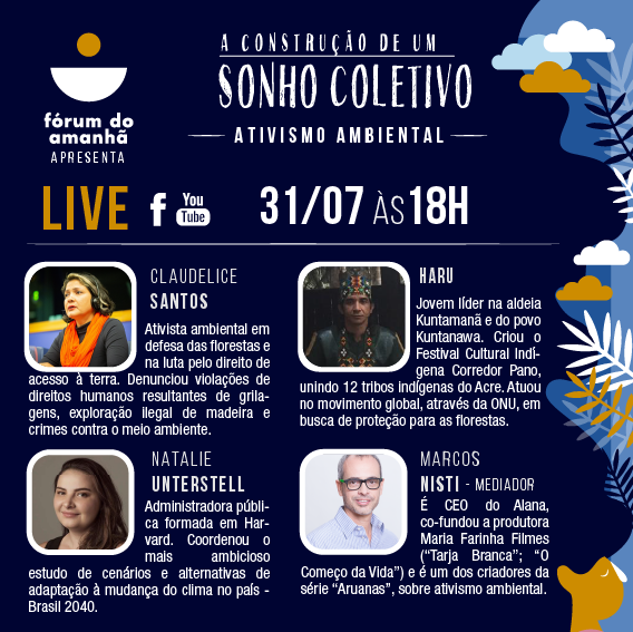 Live "A construção de um sonho coletivo - Ativismo Ambiental" . Canal do Youtube Fórum do Amanhã . 2020