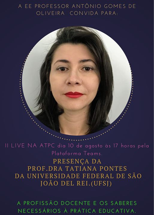 Live "A profissão docente e os saberes necessários à prática educativa" . Professora Tatiana Pontes - UFSJ . 2020