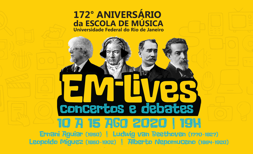 EM-Lives Concertos e Debates "172º Aniversário da Escola de Música da UFRJ" . De 10 a 15 de agosto . 2020