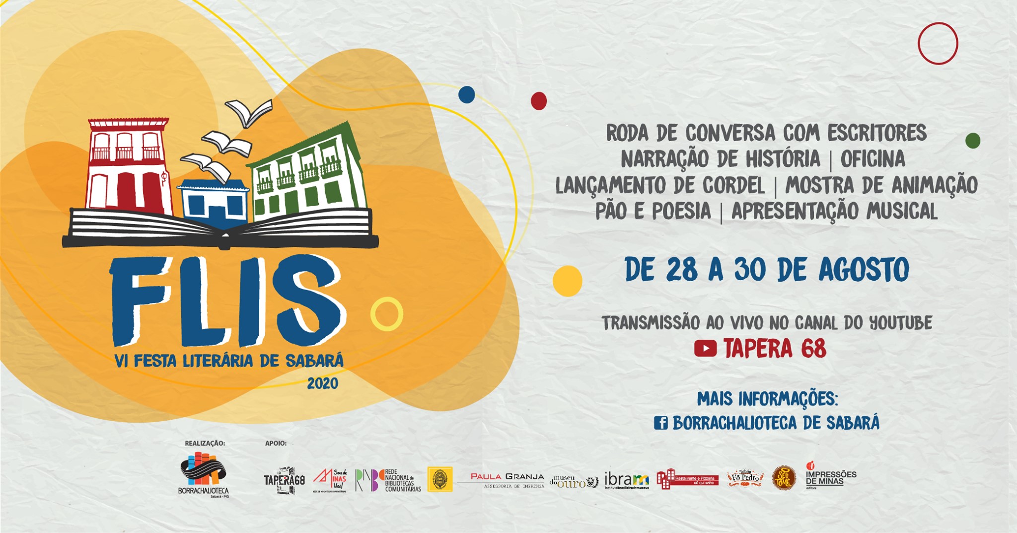 VI Festa Literária de Sabará . De 28 a 30 de agosto . Ao vivo pelo Youtube . 2020