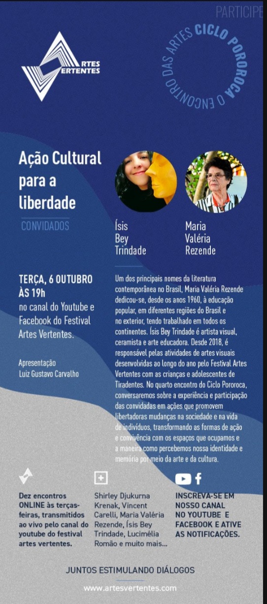 Encontro das Artes "Ação Cultural para a Liberdade" . Festival Artes Vertentes . Ao vivo pelo Facebook e Youtube . 2020