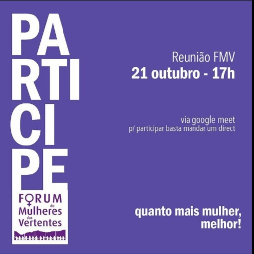 Informações pelo direct no Instagram @forumdemulheresdasvertentes