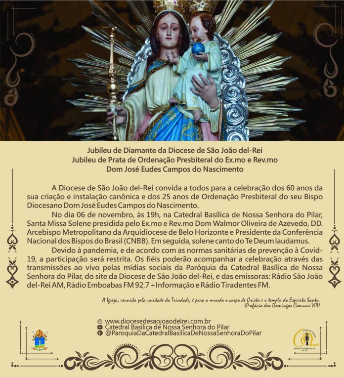 Missa Jubileu de Diamante da Diocese de São João del-Rei e Jubileu de Prata de Dom José Eudes do Nascimento . Ao vivo pelo facebook e Youtube . 2020