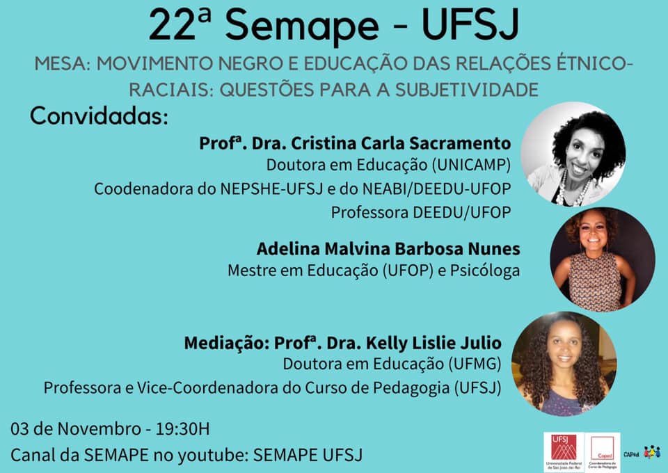 22ª SEMAPE UFSJ . Programação completa de 03 de novembro . Ao vivo pelo Youtube . 2020