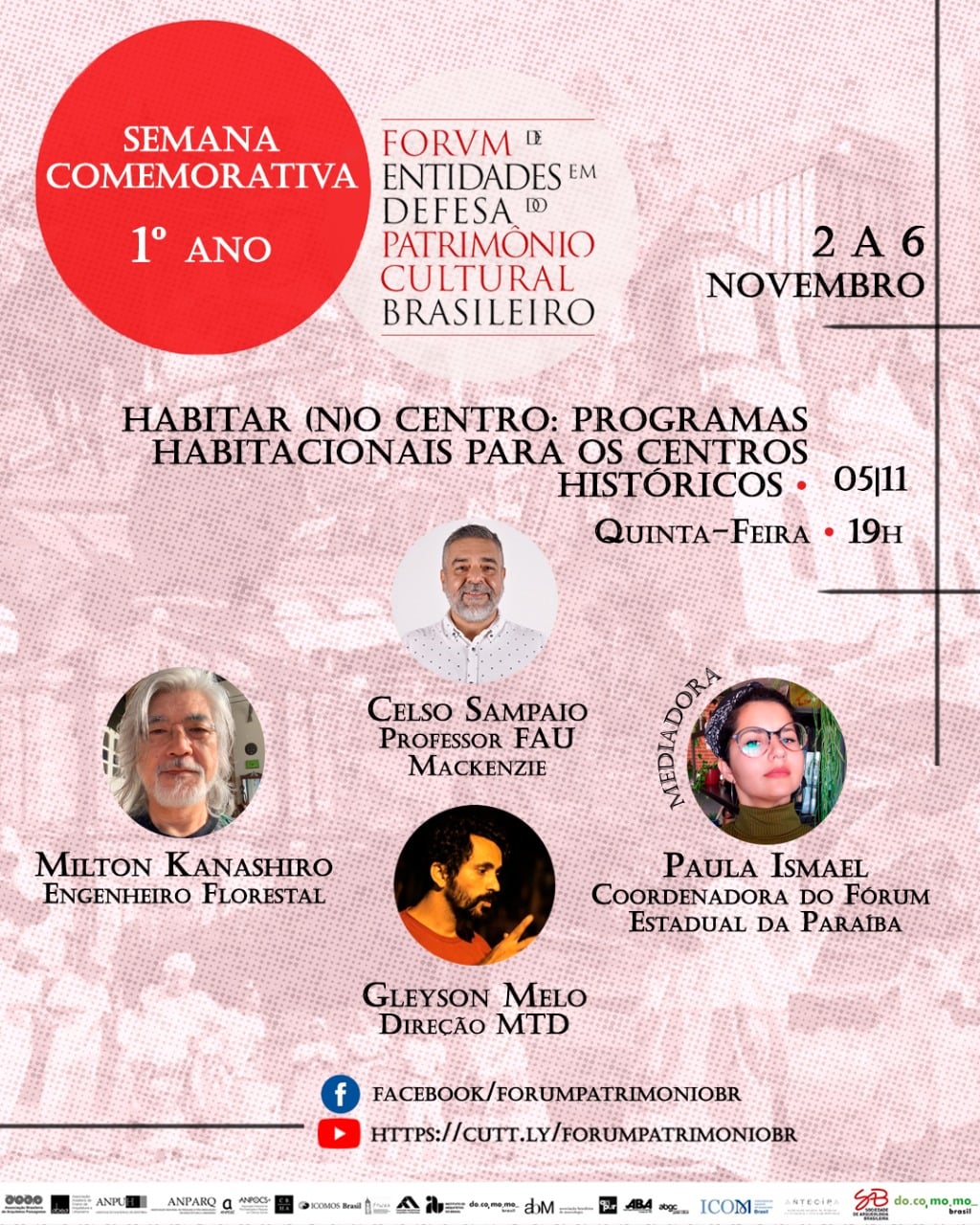Semana Comemorativa " Fórum de Entidades em Defesa do Patrimônio Cultural Brasileiro" . Programação 05 de novembro . Ao vivo pelo Youtube . 2020.