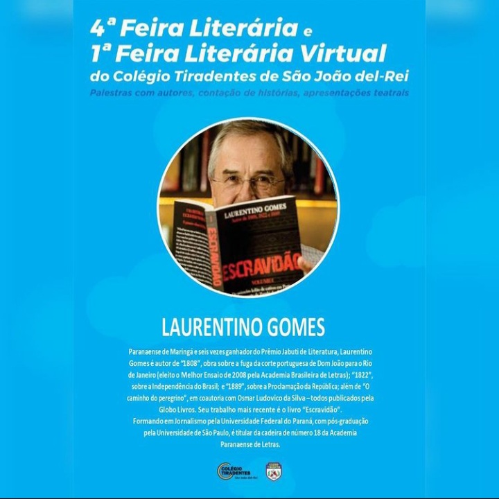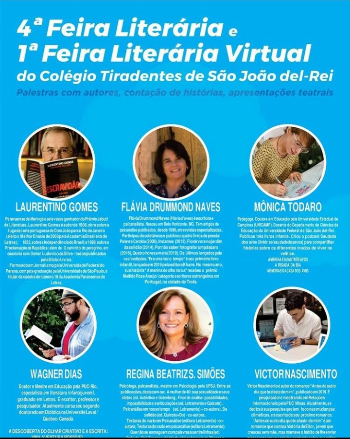 4ª Feira Literária e 1ª Feira Literária Virtual . Colégio Tiradentes de São João del - Rei . Ao vivo pelo You Tube e Instagram . 2020