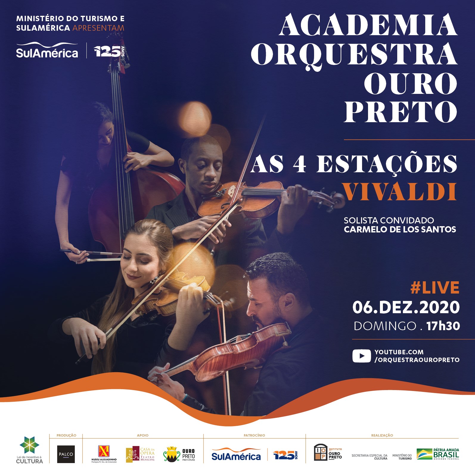 No repertório clássico, o primeiro concerto, às 17h30, traz uma das obras mais conhecidas do compositor italiano, Antonio Vivaldi (1678-1741), “As Quatro Estações”. Os alunos da Academia Orquestra Ouro Preto estarão ao lado do solista convidado, o virtuoso e renomado violinista Carmelo de Los Santos. “A Primavera”, “O Verão”, “O Outono” e “O Inverno”, obras publicadas em 1725, serão apresentadas na Igreja São Francisco de Assis, um templo-museu considerado a expressão máxima da arte barroca de Aleijadinho e do Mestre Ataíde.