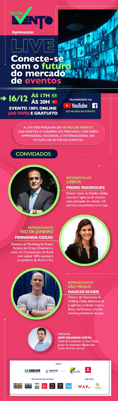Live "Conecte-se com o futuro mercado de eventos" . Vai rolar evento . Ao vivo pelo You Tube . 2020