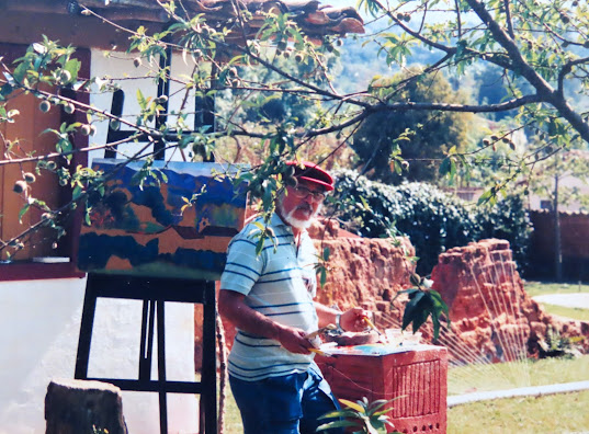 Inimá de Paula pintando no jardim da Casa de Gravura.