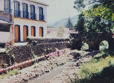 Ribeiro Santo Antônio e a Ponte de Pedra. Foto da década de 1940, em Relíquias da Terra do Ouro, de Edgard de Cerqueira Falcão.