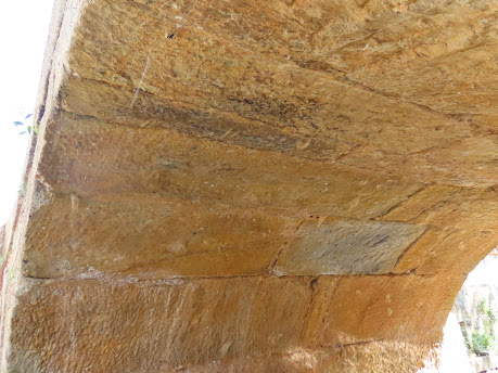 Aspecto da Ponte de Pedra, com vegetação arbustiva entre seus blocos rochosos, antes da obra de restauração. Fotografia: Luiz Cruz, 2013.