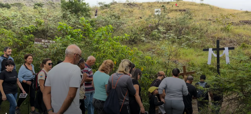 Fiéis durante caminhada na Via Sacra da Serra do Lenheiro, em 2025. (Foto: Igor Chaves)