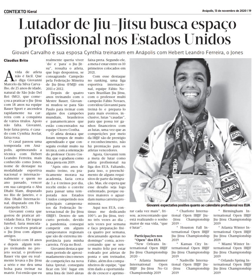 Giovanni Marcelo da Silva Carvalho: atleta de Jiu Jitsu de Sao João del-Rei nos EUA