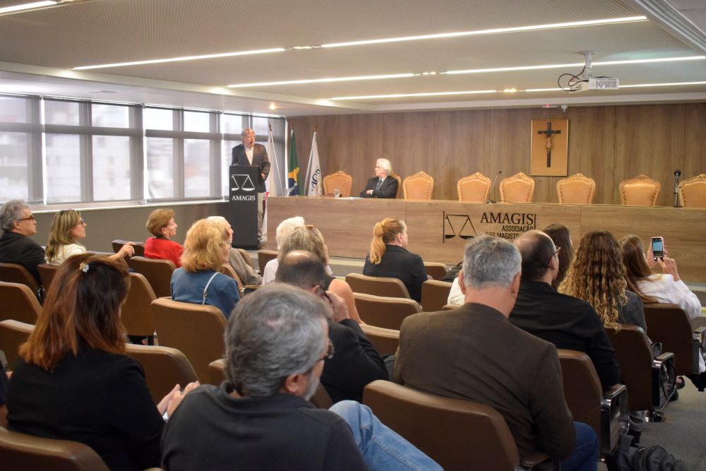 Antes de iniciar sua exposição, o juiz Auro Aparecido fez um agradecimento especial ao desembargador José Fernandes Filho, ex-presidente do TJMG, presente ao evento. “O desembargador José Fernandes Filho é a referência e a coluna da Magistratura mineira e nacional. É o homem das letras, do coração e da família. Sua presença nos honra muito”, disse.