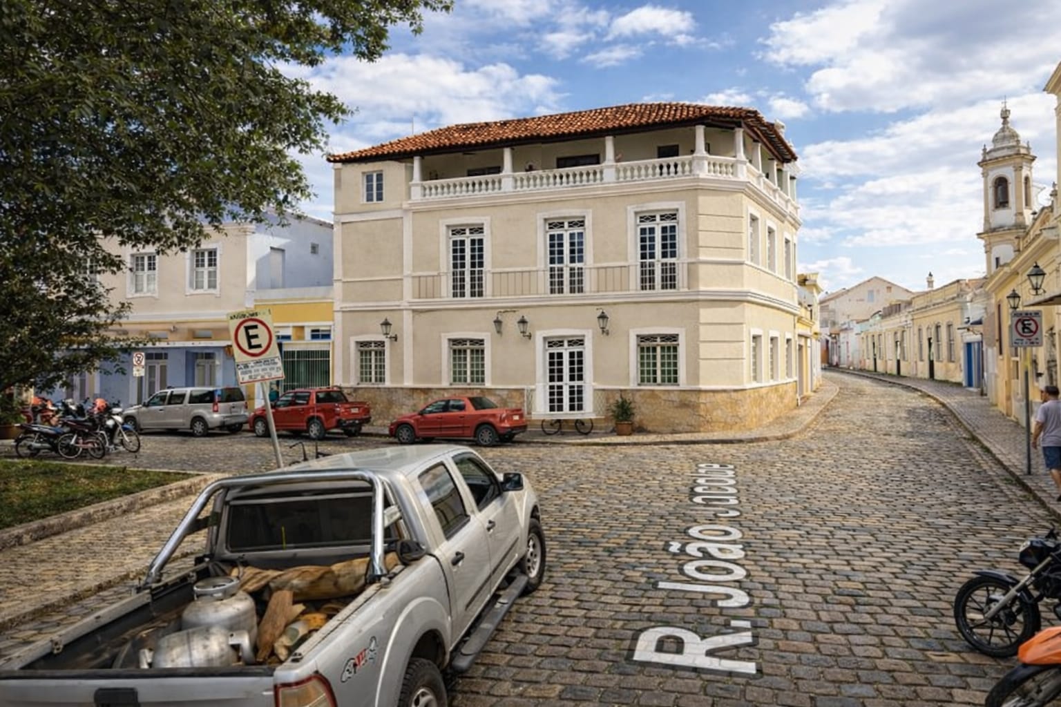 Já na outra esquina, é lógico que a Balbino da Cunha (antiga rua São Francisco) precisa ser de paralelepípedo. Pelo Menos até a esquina do Postinho, embora sugiro, esse paralisado bem nivelado deveria ir até a rua Maria Teresa. A esquina do postinho precisa ter ilhas para pedestres e a entrada e saída de veículos normalizada. E assim em qualquer cidade padrão. Os passeios devem ser padronizados e os fios de eletricidade enterrados, além das obras de drenagem adequadas.