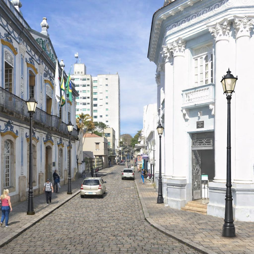 Os paralelepípedos e o tratamento dos passeios valorizamos o conjunto da Santa casa e Nossa Senhora das Dores. A avenida Nossa Senhora do Pilar e Andrade Reis podem continuar asfaltadas. O novo limite do asfalto e afastado para a esquina superior da rua Maria Teresa. É uma questão controversa, mas o trecho da Maria Teresa é pequeno e daria mais unidade em paralelepípedos se unindo aos já existentes na Praça da Estação e Antônio Rocha. Essa unidade ajuda a valorizar e definir melhor o ambiente e o conjunto do Centro Histórico.