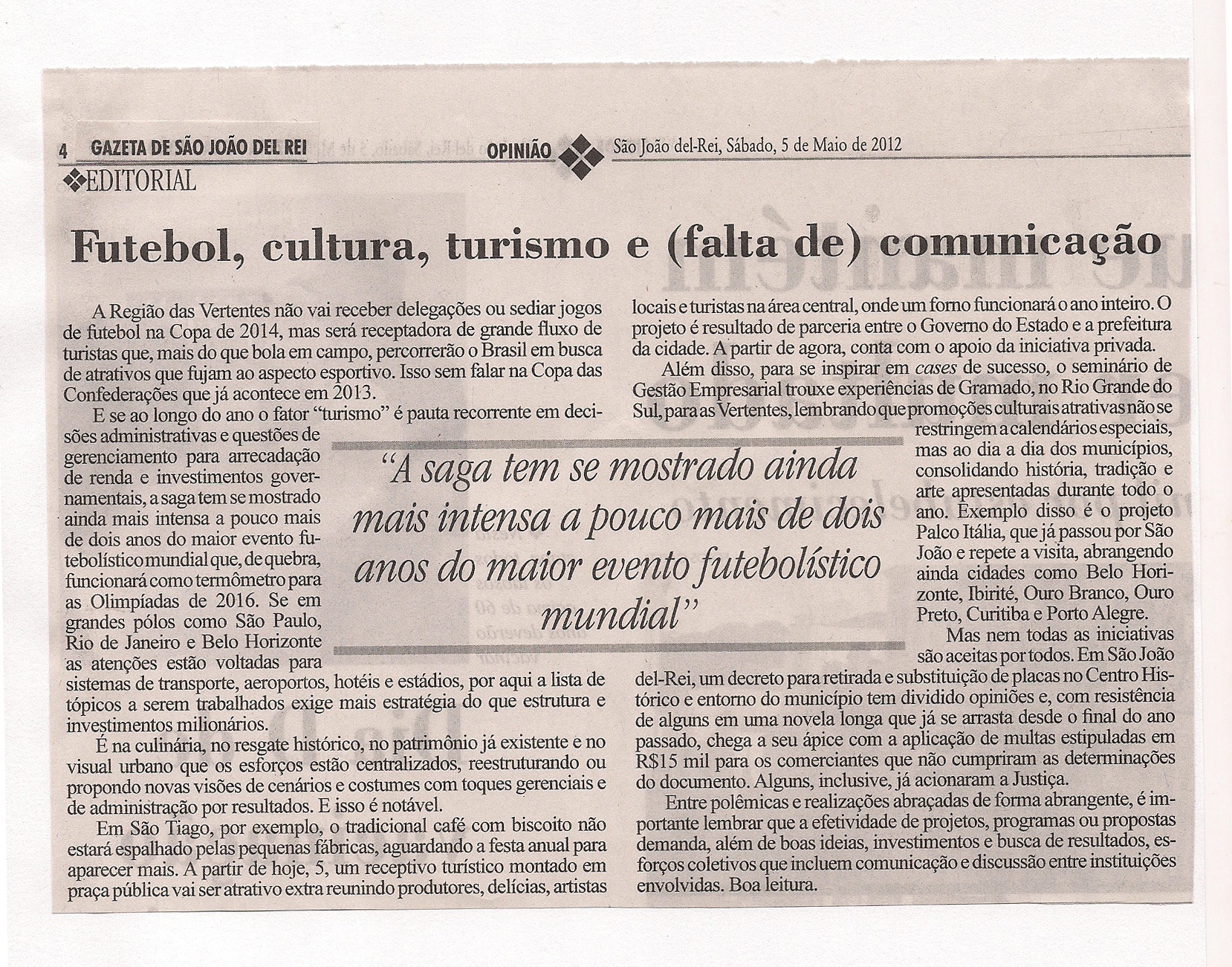 Fonte: Gazeta de São Joãodel-Rei em 5 de Maio de 2012