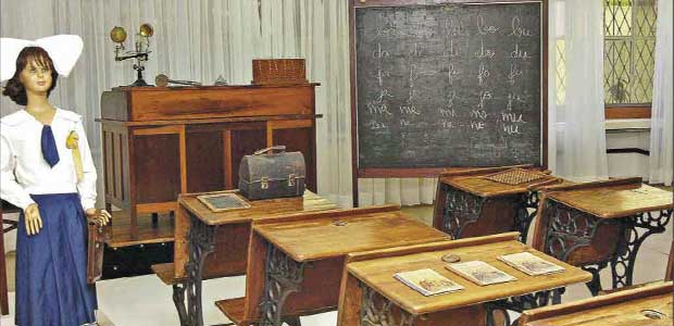 Num acervo com mais de seis mil peças, o visitante poderá viajar na linha do tempo da educação, aberta com uma sala de aula da Escola Tradicional. O tablado para abrigar o professor, as cadeiras de ferro presas ao chão e a palmatória na mesa marcam o modelo de ensino adotado em Minas até meados dos anos 1920. “O estado vivia sob a novidade da criação dos grupos escolares. Nesse tempo, o foco era o professor e a educação era de repasse, sem trocas entre educadores e alunos. Um dos objetos marcantes era a pequena lousa, usada pelos estudantes para treinar a lição, já que nessa época o papel era muito caro e os cadernos quase artigos de luxo”, explica a pedagoga do museu, Nelma Marçal Lacerda Fonseca.